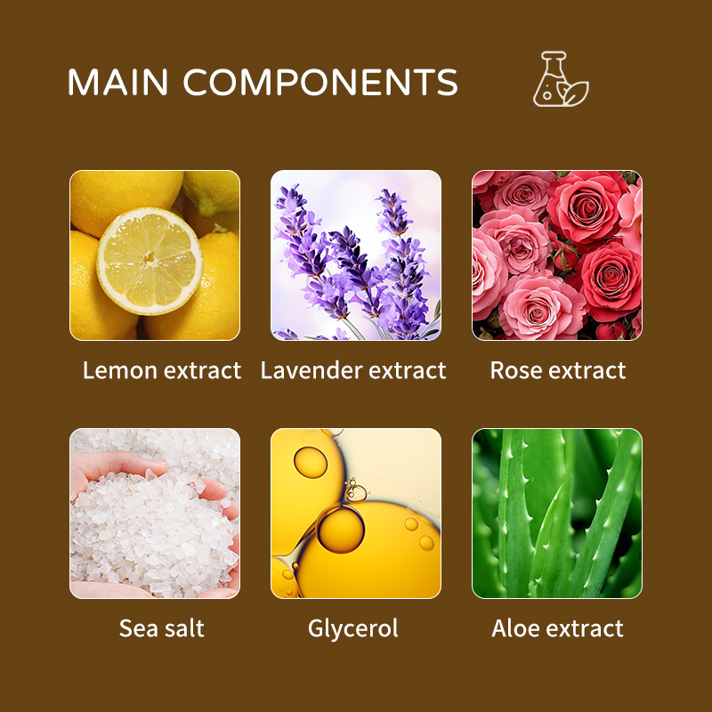 We can make different scents of the foot salt scrub: Lavender, Rose, Avocado, Chocolate, Vanilla, Aloe Vera, etc. Customized Service, Low MOQ,